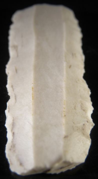 Il s'agit d'une lame à trois pans retouchée (pour l'utilisation en tant que couteau je ne sais pas, 3,5cm ça me parait quand même assez petit, il est possible aussi que ce soit un élèment de faucille)