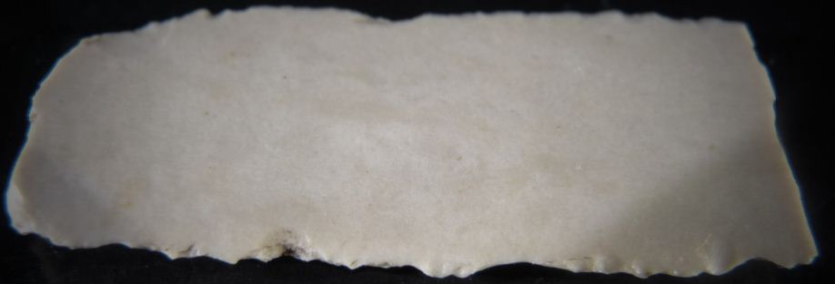 Voici un morceau de silex, de 35mm et 14mm au plus large, qui semble etre cassé aux deux extrémités. Trouvé vraiment par hasard dans un bois de Savoie lors d'une sortie détection, il a jaillit de terre au moment ou je creusais, vraiment un coup de bol !!!