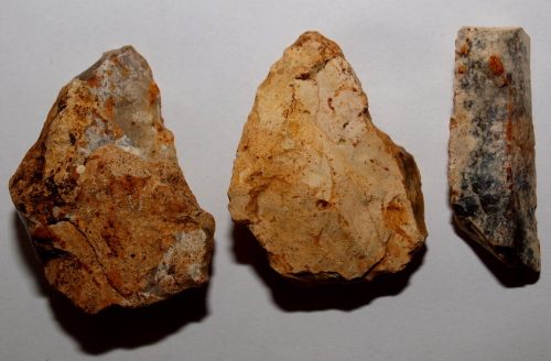 le voici au milieu ( 7 cm X 5 cm ) avec son p'tit frère ( 7 cm X 5 cm ) et le reste de lame ( 7 cm X 2.5 cm )