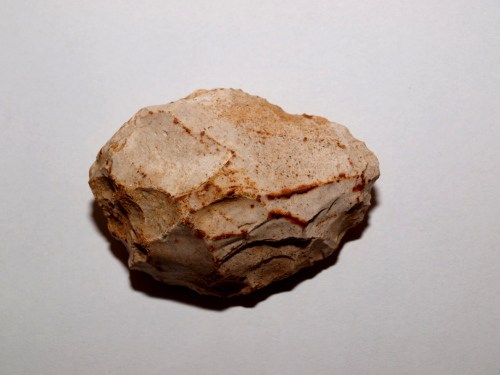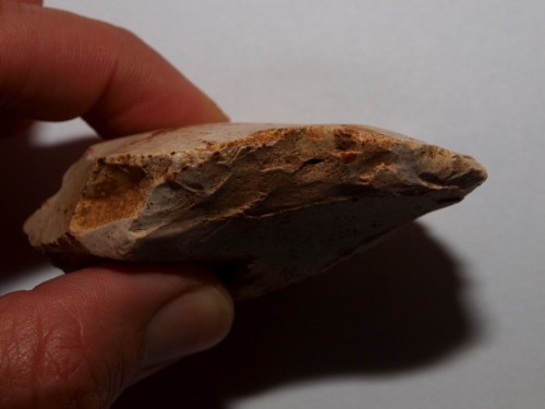 en fait très peu retouché sur cette face ( pratiquement lisse ). une sorte de biface sur éclat...
