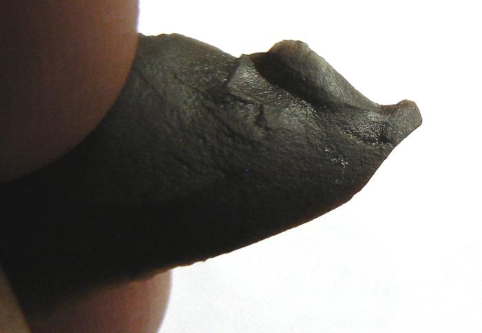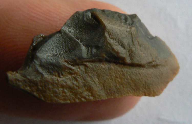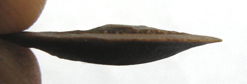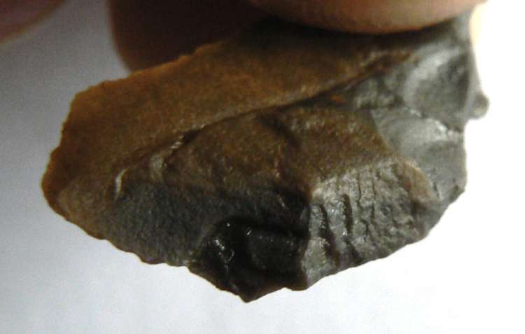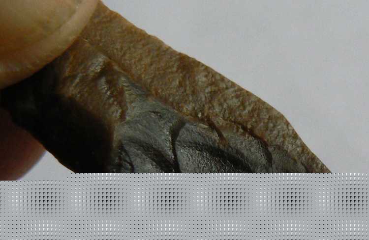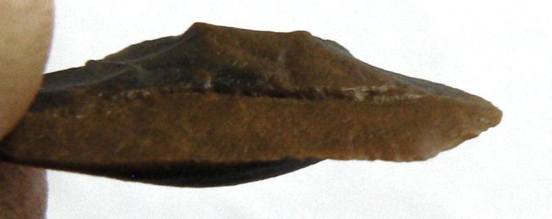 Je suis parti de ce constat ,rapiette , pourquoi faire quatre petits enlèvements réguliers en haut en R0 avec à droite cette sorte de pointe à 45° que l'on voit mieux en R5 sur un si petit éclat si ce n'est pour une meilleur préemption afin de pouvoir ce servir de cette petite pointe qui elle est plus dégagée au verso par rapport au bulbe, je peux t'assurer qu'elle coupe encore ainsi que le côté gauche en R5, bon c'est pas un perçoir mais peut-être un mini racloir qui devait avoir son utilité. C'est peut-être un simple éclat anthropique sur lequel un individu a fait quatre petits enlèvements dont le dernier affine la pointe pour ne pas s'en servir ?, bon comme dab, rapiette j'essaye d'argumenter ce n'est pas de l'entêtement de ma part. Merci Mat pour cette id faite à la vitesse de la lumière