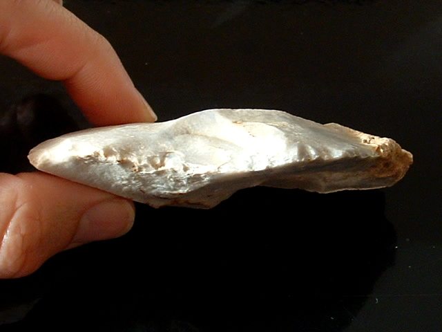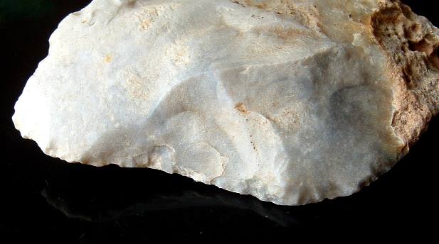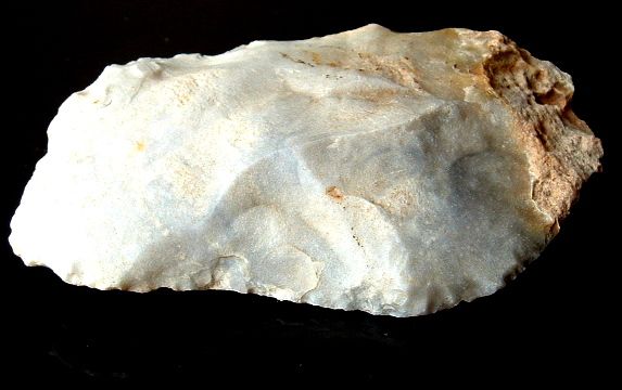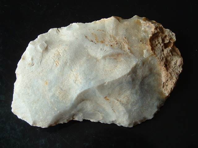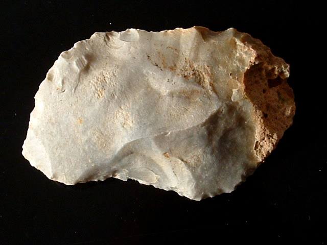 Je pense qu'il s'agit là d'un éclat moustérien, peut être utilisé comme grattoir si l'on en juge par ce qui me semble être des petites retouches sur le pourtour de la pièce.