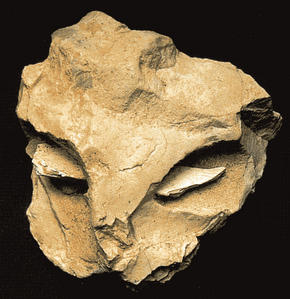 Le site de la Roche-Cotard a été découvert au début du XXe siècle mais le niveau moustérien (La Roche-Cotard II), situé devant l'ouverture de la grotte, n'est connu que depuis 25 ans. Dans ce niveau d'habitation a été découvert en 1975 un objet indubitablement préparé par l'Homme : c'est un silex plat possédant un trou naturel dans lequel est placée une petite esquille d'os. Cet objet fait penser à un masque ou une face humaine ou animale, peut-être un félin.