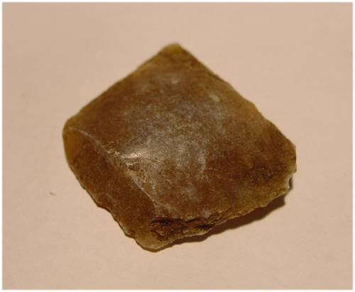 Arguments pour une pierre à fusil: les dimensions sachant que plusieurs modèles ont existé depuis celui pour le pistolet de madame jusqu'à celui beaucoup plus volumineux pour le fusil de forteresse par exemple, la forme générale typique malgré les 'imperfections', la nature du silex fin à priori de 'Touraine' d'un ton miel