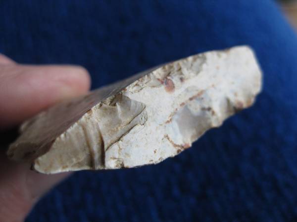 Encore une belle pièce. Il est possible qu'elle soit composite, deux fonctions,la courbe de la coche est bien régulière et elle est faite d'un seul éclat apparemment, la pointe a été ré avivée, après la première taille qui avait laissé cette belle patine crémeuse, pour moi perçoir et coche, une photo du profil ou la tranche gauche en R0 ainsi que celle du haut seraient bien venu. Cela permettrait d'avoir une appréciation de son épaisseur Tu peux aussi faire des photos plus grandes et aussi mettre les dimensions de l'objet.