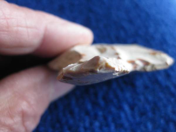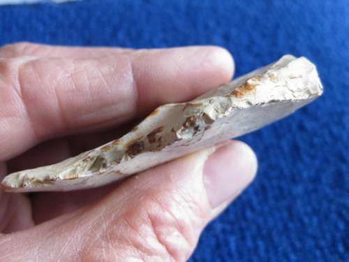 Je vous soumets cet outil trouvé en labour du 78, il y a quelques temps déjà , et je me demandais si en plus de l'encoche, il n'avait pas servi de perçoir.!!!!!!!! Un outil multiple en quelque sorte.!!!