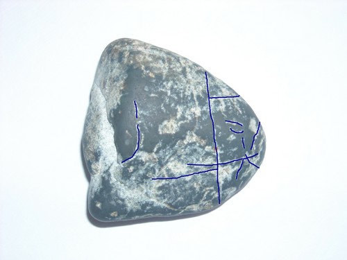 [New11] un peu taquin oui, mais assez marrant aussi. Je comprend le scepticisme gĂ©nĂ©ral mais je vous assure que ce galet comporte des traits (gravures). Si vous regardez la premiĂšre photo il y a sur la droite du galet un trait vertical et deux traits horizontaux et au milieu il y a deux petits traits qui forment comme un Ćil.