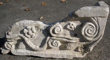 Ce fragment à l'air d'être en calcaire, pourrais-tu le confirmer Pac ainsi que sa hauteur car pour un sarcophage je ne le trouve pas vraiment assez haut. La facture de la taille du décor ne fait pas trop 18em. Cela me parait plus ancien, si en plus le champ est parsemé de tegulae, il doit certainement y avoir eu une construction à une époque gr. Oui il est possible que ce bassin soit de la même époque mais pour le confirmer il faut d'abord pouvoir identifier son décor. En tout cas très belle pièce.