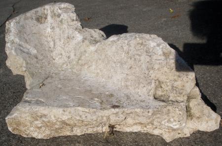 Le dessous (ou dessus dans l'hypothèse d'un couvercle???) est assez brut, et c'est là qu'on voit assez bien que c'est du calcaire.