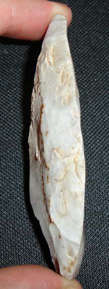 J'ai quand même beaucoup de mal à y voir un racloir convergent, les retouches latérales me semble bienêtre des retouches pour donner une forme, pas pour faire un racloir. Je reste sur l'idée d'un objet néo ou peur être paléo final.