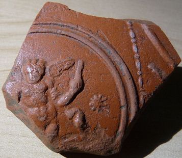 voici un beau tesson avec un ange sortit on peut le dire au ' cul du tracteur ' dans un labours de Savoie. il mesure a peu près au plus large 7cm par 6cm