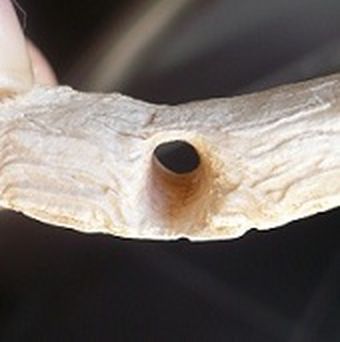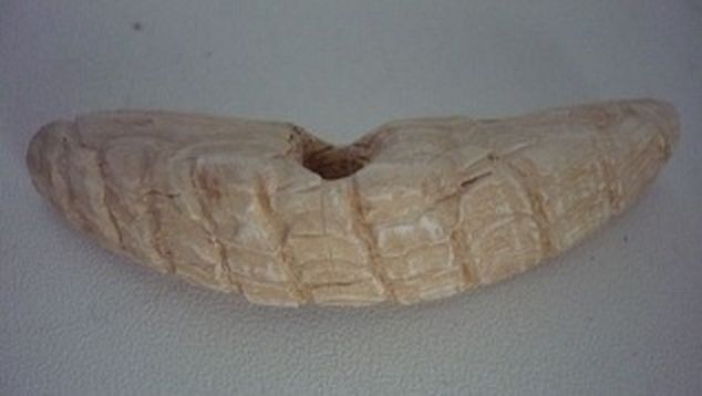 Depuis que je l'ai trouvé j'avais pensé que c'était peut etre de l'ivoire, une sorte de bijou pour ce mettre dans le nez... mais ça justifie pas le trou au milieu...