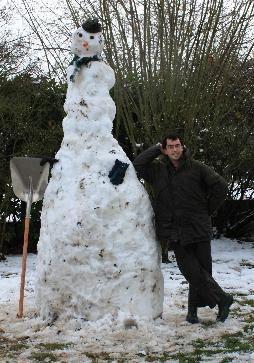 Valère: Sacrée hauteur pour ton super bonhomme de neige! J'avais en mémoire la photo où tu es caché derrière le bonhomme. Record à battre cette année? Difficile...