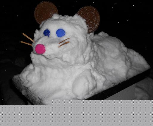 Un bonhomme de neige moitié souris, moitié lapin et moitié Splinter, mentor des tortues ninjas.