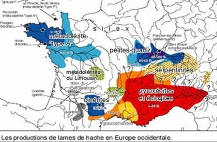 Sinon, une petite carte qui montre les aires principales de productions des haches en roche tenace...