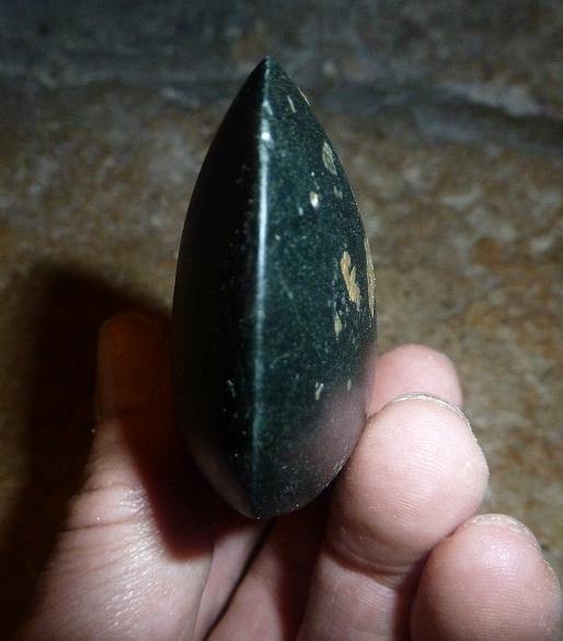 Belle petite hache, ptifred.Du néolithique final peut-être, elle est super bien polie. Peut-être de la jadéïte, j'espère que c'est la bonne prononciation mais soit pas inquiet, les pros vont-t-en dire plus.