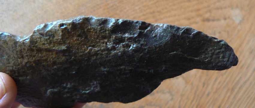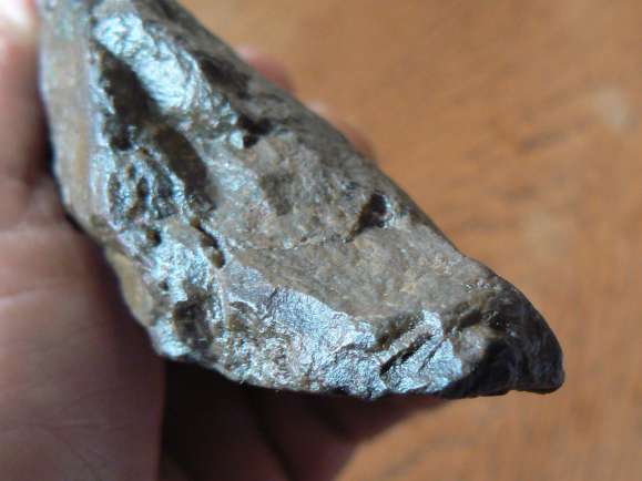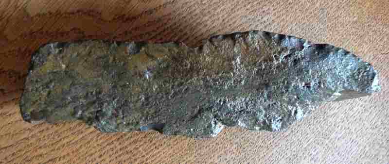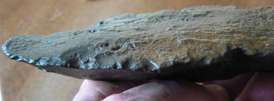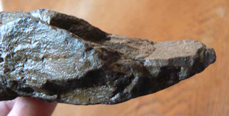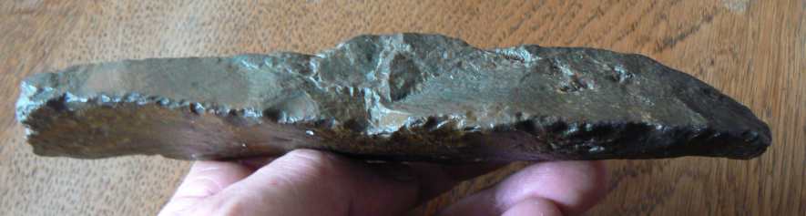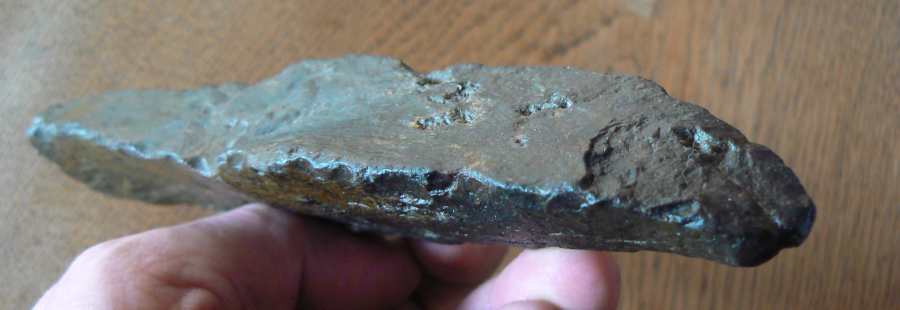 Comme promis mon cher Biface autrement j'aurais fermé ma bouche suite à ta lame MTA si tu peux me rappeller l'acronyme je te post celle-ci de 19 cms par 5,5 et 2 d'épaisseur, elle fait limite poignard, couteau, sur les dernières photos, je pense à un pic, c'est le côté du talon. L'enlèvement est moins nif que sur du silex mais il ressemble à ces pic-coteau.
