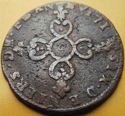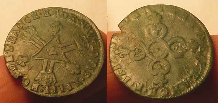 Ces monnaies dans mon secteur ne sortent pas de terre en bon état. Les écritures sont bien bouffées, les années illisibles, et je suis content quand je peux lire le nom du roi.