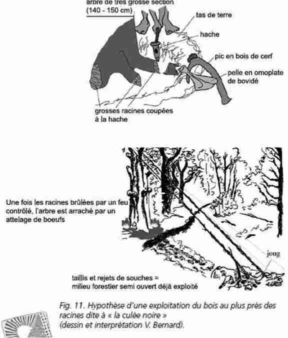 L'hypothèse qui est présenté de l'exploitation des arbres de grosses section n'est pas vérifiée , d'autant que l'utilisation de tels arbres n'était sans doute pas fréquent (mise a part les pyrogues)