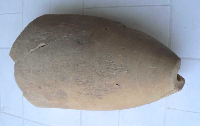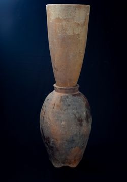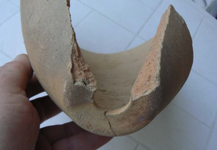 Trouvé ces fragments de poterie lors d'une sortie alluvionnaire, au début j'ai pensé à une amphore, forme, couleur, mais pas de cul, à la place un trou, un trou du cul d'amphore Bon je sais, c'est moyen mais j'ai pas pu m'en empêcher. La chose mesure un peu plus de 40 cms. Merci pour vos avis.