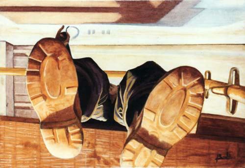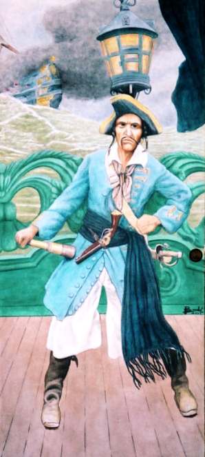 Effectivement, Vincent, t'as l'oeil. Le boulot ne ce bousculant pas depuis le début de l'année, j'ai décidé de peindre une quinzaine de toiles pour bien sur un jour faire une expo. Je te joins l'agrandissement de mon avatar qui était un élément de décor flibustier d'un restaurant et aussi une toile perso que j'ai nommée 'le peintre déco'