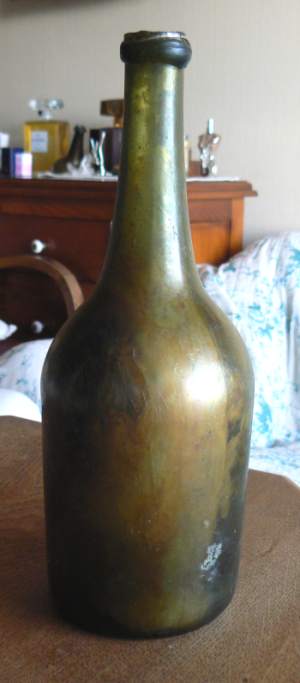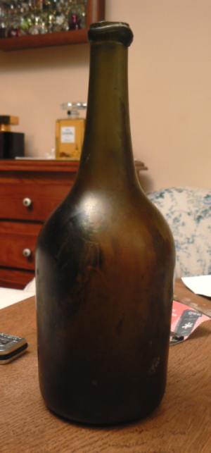 3. Un troisième contact a eu une information d'un de ses amis collectionneur de bouteilles (environ 4000). Pour lui, il s'agit d'une pièce rare 'soufflée sans reprise par le fond avec un collet de verre rapporte à chaud; elle date vraisemblablement de la fin XVIII siècle où du début du XIX siècle'.
