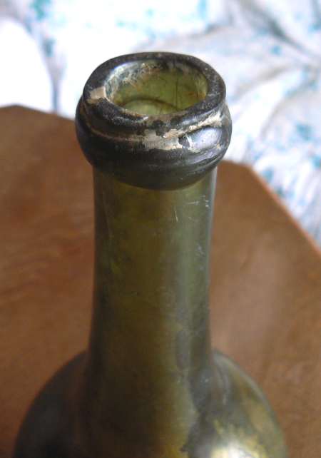 Michel_V a bien expliqué le processus de fabrication. Pour ma part j'ai plongée sur quelques épaves contenant le même type de bouteille. A l'époque la datation était milieux 19em, mais bon, cela ne veux pas dire que ce n'est pas plus ancien et la proposition d Philippe est plausible. A l'occasion j'en discuterai avec un copain archéologue qui est un peu plus spécialisé la dessus.