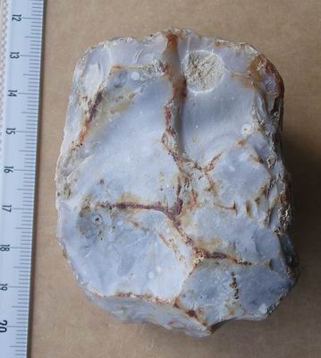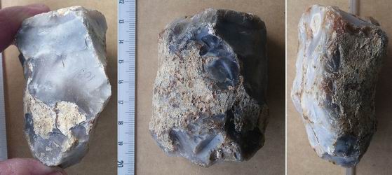 Effectivement, ces nouvelles photos ne font pas franchement penser à un outil fini. Peut-être un nucleus tout de même : il me semble deviner un enlèvement sur la première photo (axe de percu : 17h - 11h). Prélèvement d'éclat ou ravivage de la table ?