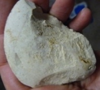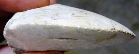 Sur le site que je prospecte depuis des années (voir le blog), j'en ai ramassé un petit bout, le polissage est encore très beau et on voit bien que le choix du calcaire s'est avéré primordial (grain très très fin et très blanc) pour obtenir ce résultat.