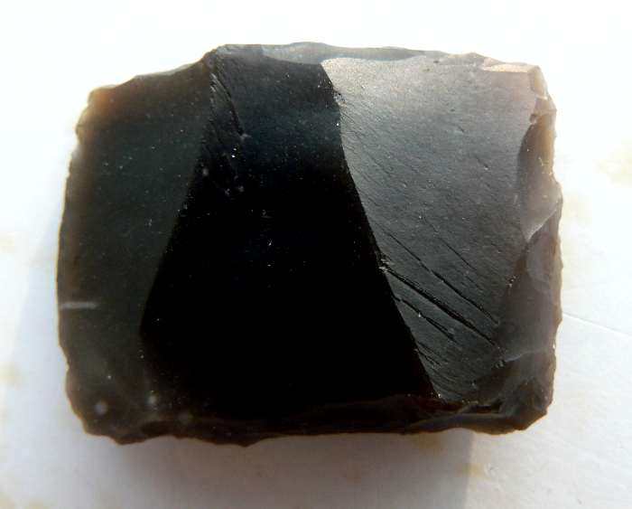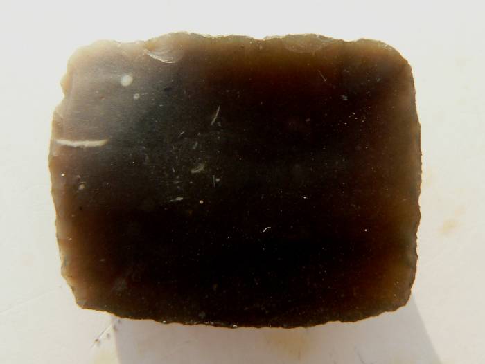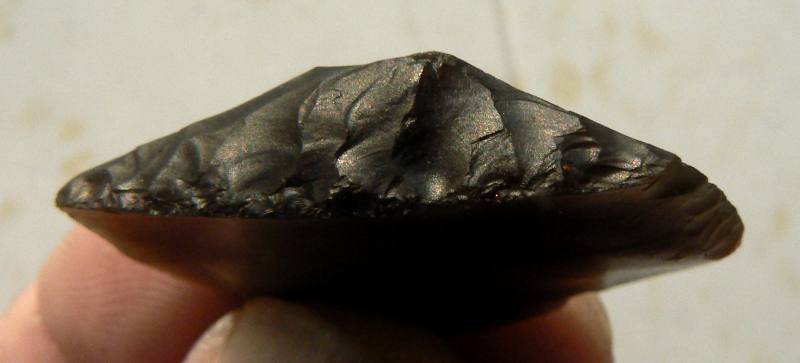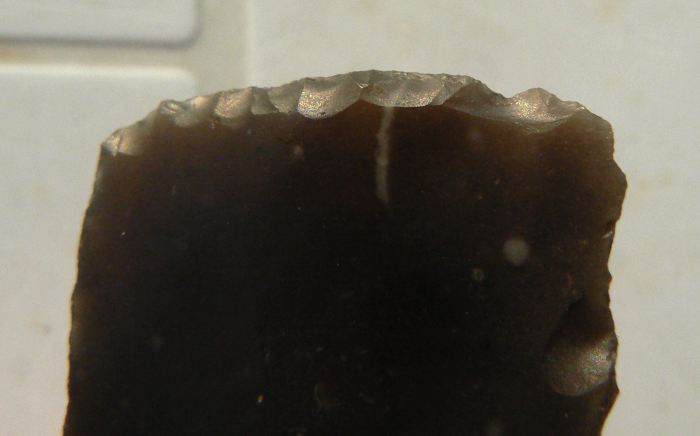 Je vous présente cette petite beauté en silex brun voir noir, elle est neuve. J'ai eu de la chance ce jour là , je suis passé trois fois à côté avant qu'elle m'attire l'oeil.