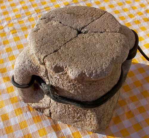 [229] Précision supplémentaire, l'ouverture conique traverse complètement l'objet sans toutefois le percer comme un entonnoir. Le fond pointu était donc de faible épaisseur, quelques mm tout au plus