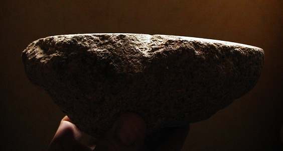 Et bien non, rien à voir avec le fromage. Juste pour vous montrer cette demie molette en granit trouvée hier par pur hasard en bordure de chemin. Au vu de sa taille (195mm de diamètre) elle devait être utilisée à deux mains, la meule dormante devait quant à elle être aussi de taille plus que respectable.