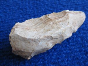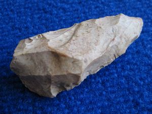 Me fait penser à un nucléus ou à une ébauche de petite hache faite par un tailleur inexpérimenté. Belle matière en tout cas.