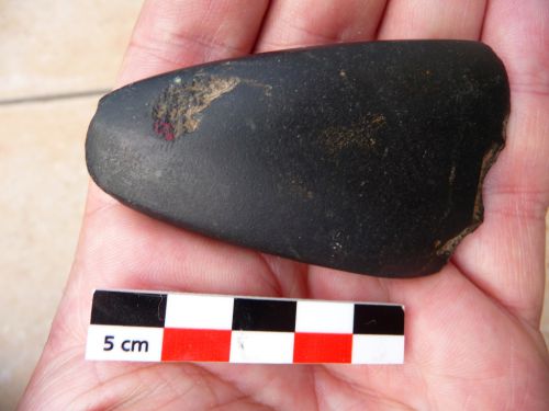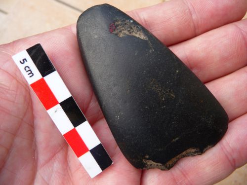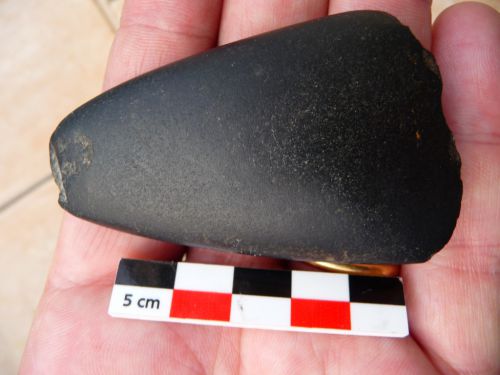 [889] Petite hache trouvee dans le Gard. Couleur noire, grain tres fin et lisse.