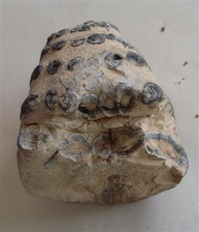 Je m'excuse ,je ne veux blesser personne ,mais j'insiste ce n'est pas une dent de mammouth ,FDLC est un bon observateur ,les vrais (éléphants ) ont des lignes parallèles,pas des protubérances en cercles ..C'est bien une dent de juvénile mais de mammouth je ne crois pas ..maintenant vous pensez ce que vous voulez ..............