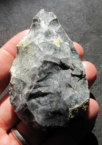 Mon premier biface trouvé sur ma commune, en footing ... hasard hasard.. très faible quantité de découvertes de ce type sur ce secteur, j'en suis d'autant plus heureux !.