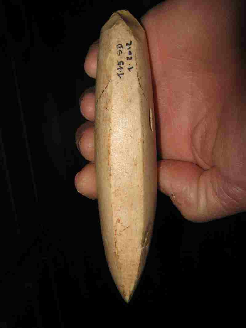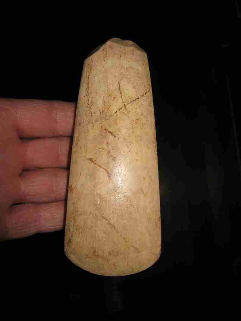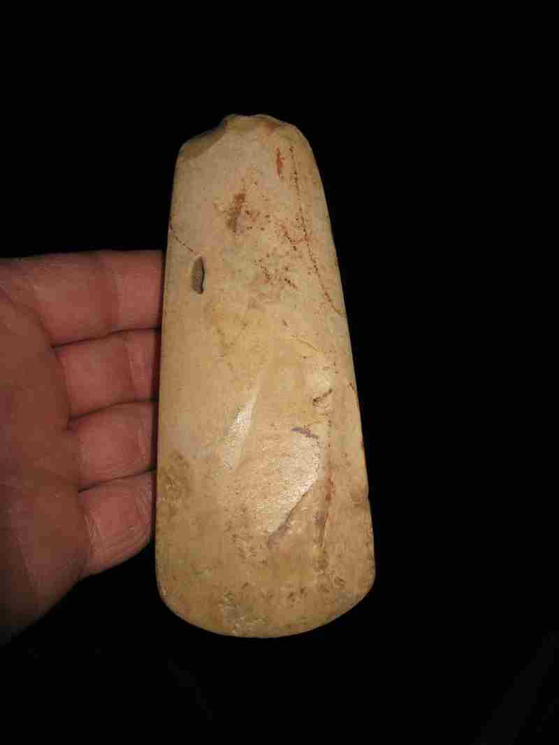 Par contre la forme est caractéristique du Périgord talon large, jamais pointu (cela ressemble un peu aux haches en silex tertiaire de Jabline). La majorité des haches que je connais ont généralement une forme triangulaire, et principalement les haches en roches vertes.