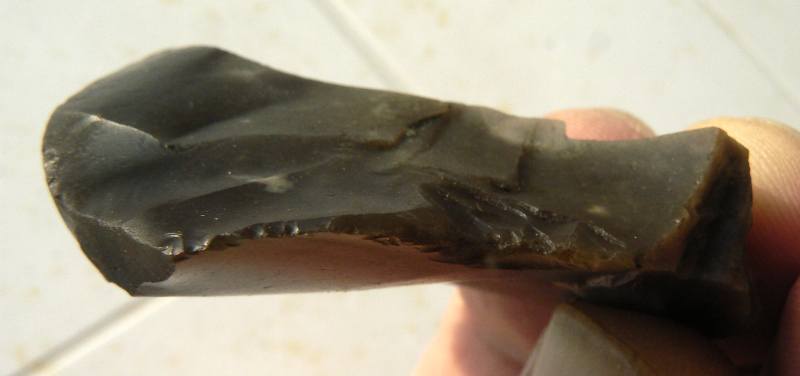 Soit dit en passant on trouve dans les champs des bouts de verre de bouteille, de la porcelaine qui présentent elles aussi ce genre de retouches et pourtant personne n'est venu les tailler.
