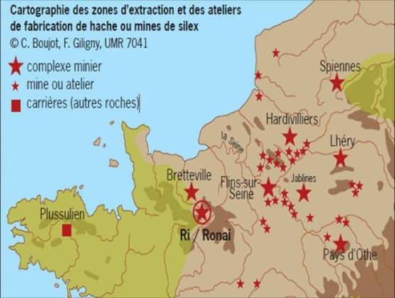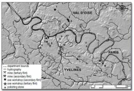 Ci dessous une carte des minières à silex de l'Ouest parisien qui pourra vous aider à identifier vos trouvailles.