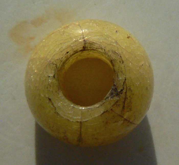 Je vous présente cette petite perle en verre bien faïencée de 8 mm environ, pourrait-elle être ancienne ? Merci pour vos avis.