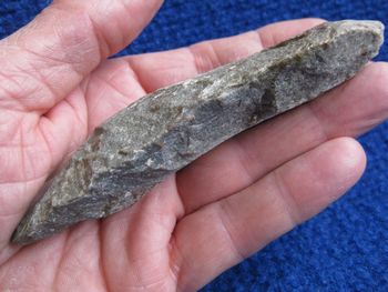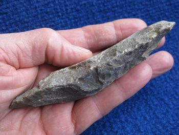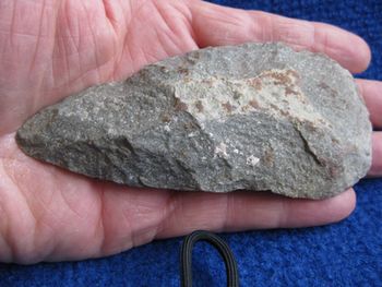 Le matériau employé me surprend. La minéralogie n'est pas mon point fort, loin de là , mais cet outil n'est pas dans un silex que j'ai l'habitude de rencontrer dans ma région, et son aspect granuleux, rugueux et terne me fait plutôt penser à du grès.!!!!!!!!!