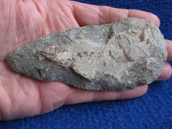 Il a les proportions d'une hache taillée mais la forme aussi d'un biface du type lancéolé.