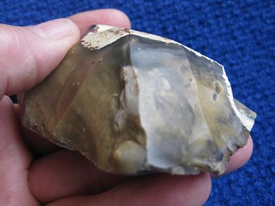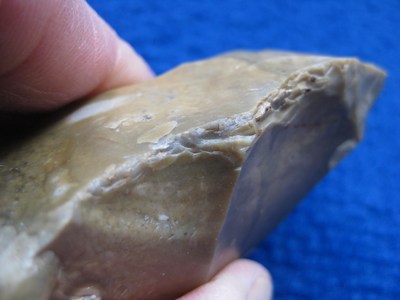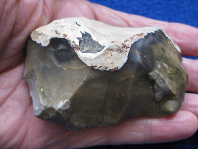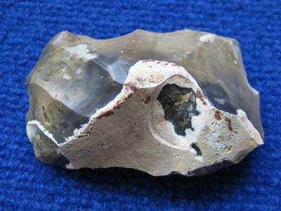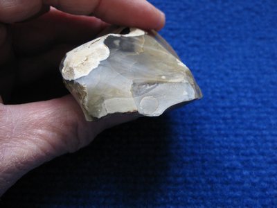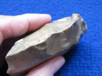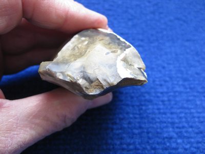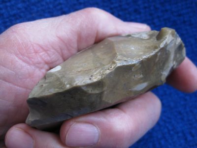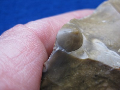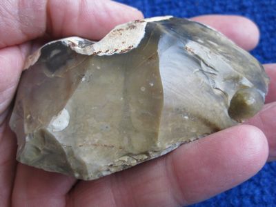 bizarrerie du silex qui n'a pas voulu, lors du débitage, laisser partir cette petite protubérance conique et qui, en plus petit, ressemble à une bernique cramponnée sur son rocher!!!