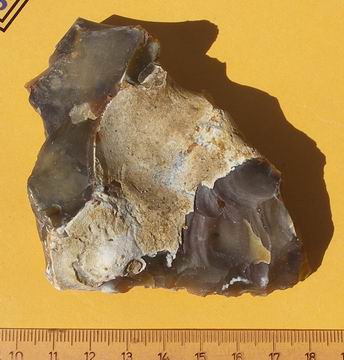 Dans un champ qui vient d'être planté en maïs, j'ai trouvé ce silex affleurant la surface avec des cassures manifestement toutes fraiches.
