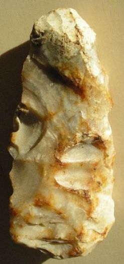 'briquet. Il s'agit d'outils toujours allongés, épais, aménagés par retouches abruptes. Les deux extrémités sont toujours plus ou moins polies.'