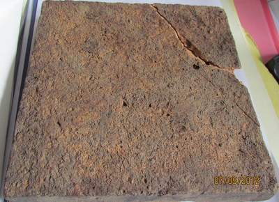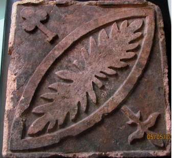pour moi c'est un carreau de terre cuite de sol,il faudrait voir l'autre face ,le coté que tu nous présente est le coté a sceller et ceci est la marque d'un fabriquant local