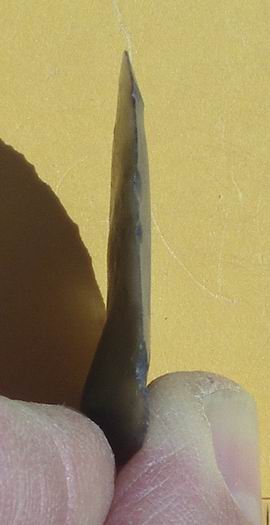 En fait de pointe je classerais plutôt comme éclat. C'est un éclat bien symétrique, droit et très mince mais une erreur de percussion a empéché d'en faire une pointe.