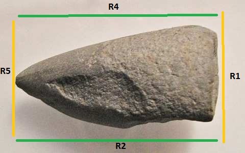 Pour une meilleure lisibilité, j'ai ajouté quelques repères sur la photo 'R0'. J'ajoute de plus une photo d'une herminette sur laquelle j'ai délimité en rouge la partie dont serait issu l'outil opportuniste que je présente.