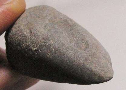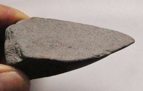 Voici donc un fragment de hache polie en dolérite d'une longueur de 61mm. Il présente une face parfaitement plane et uniformément usée, la face correspondant à l'ancienne cassure présente quant à elle un polissage partiel et les arêtes jointives de la face plane sont elles aussi bien émoussées. Cet outil me semble donc soit avoir été beaucoup utilisé, soit avoir été consciencieusement préparé. Ce que je souhaiterais savoir c'est à quel type de travail il peut avoir servi ? Si vous avez une idée...