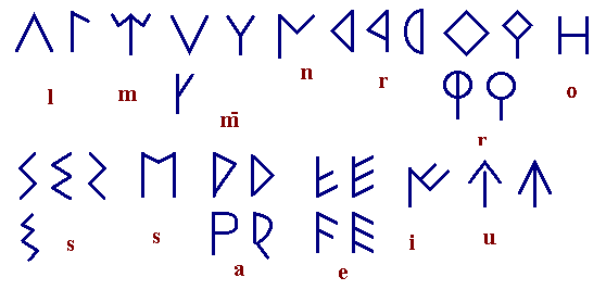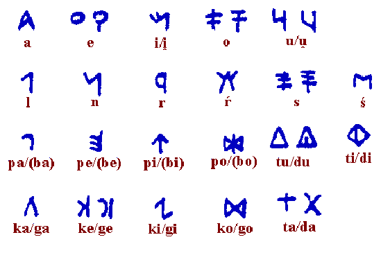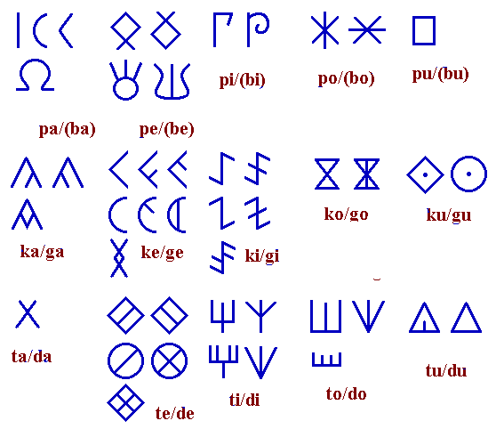 Je te joins Sam,l’alphabet ibérique du Nord et du Sud ainsi que celui du celtibérique. Dans ce dernier le PI/BI est inversé il correspond au 4em signe,on y trouve le O avec un point qui a pu être usé correspondant au KU/GU, le 2em signe correspond au ( a ). Dans l'alphabet ibérique du Sud on y voit une sorte de U qui pourrait correspondre avec le 3em signe